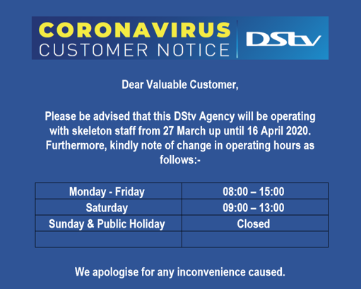 PLEASE NOTE OUR OPERATING HOURS DURING THE CORONAVIRUS